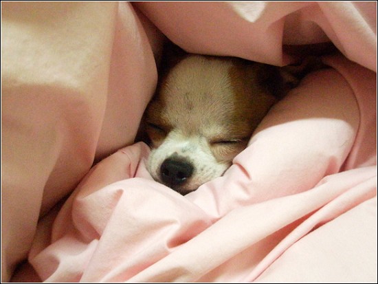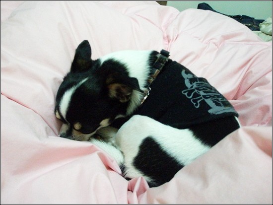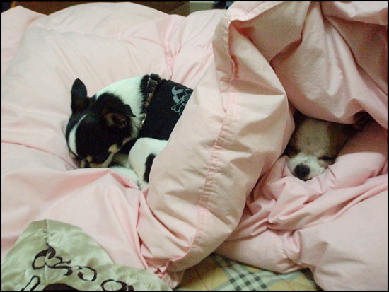 到此階段,我才明白最近小可消失的秘密,原來牠學會了「好好睡覺之棉被隱身術」了,啊哈~我家也有忍者狗呀!