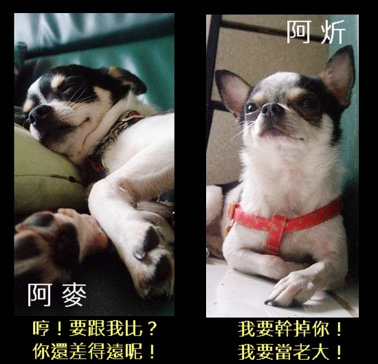 阿麥明明是綁著的,但,有綁跟沒綁似乎沒有兩樣,因為沒有綁的阿炘主動靠近了。兩隻狗就一臉敵狗相見分外眼紅,阿炘一口咬上阿麥的前腳,阿麥一大口的咬向阿炘的耳朵。見狀,馬上就努力想把兩隻狗分開,但咬起來不認得的主人的兩隻狗,你一口我一口的往我的大拇指咬下去,媽啊!好痛啊啊啊啊!!!