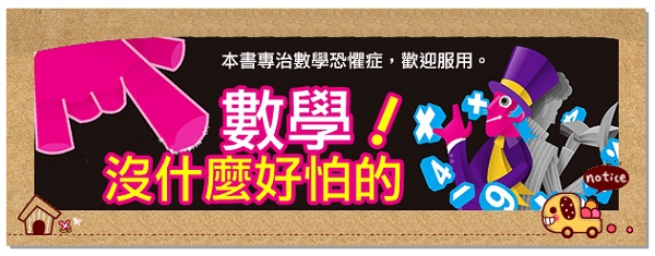 初收到書本便草略的翻過,當下心中暗暗喊了一聲糟,「我剛才有看錯嗎?一堆數字啊形狀啊X啊,是騙人的吧?」回想起以往的數學講義,雖然總是想試著認真算寫,卻總是不經意的就睡著了,尤其是數學課,跟睡覺課沒麼兩樣,愈是認真的聽台上的數學老師教課,腦袋愈是裝豆腐,只得自己默默的翻開厚重的數學講義,跟一格又一個的題目奮鬥,不會的,就轉過身「雅雅,這題怎麼算?」