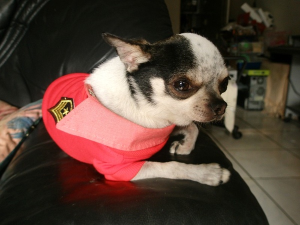 牠的名字叫鄭威炘,小名叫阿炘,牠是隻很愛咬人又神經質的吉娃娃。在家的第二天就因為我喊牠威炘,結果同名的哥哥跟牠同時轉過頭看我,害我慘遭哥哥白眼對待,從此假名為鄭阿炘。