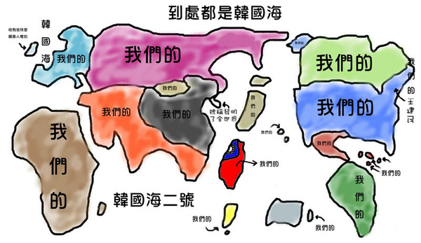 又或者是會激起台灣人愛國情操,想揮桿一擊的韓國中心地圖……後來發現這系列惡搞的滿多的,只是認真看就輸了,因為會引起國際紛爭。