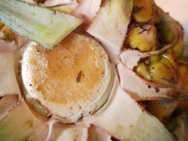 因為拍照沒拿穩,意外發現鳳梨的底,就是要被割開才能收取的部位還是溼潤的,跟平常習慣的乾底不一樣,而且整箱都散發出一抹淡淡的甜香味,原來當天現採的水果會有這種天然的香氣啊,惹的小可一直想靠近箱子~