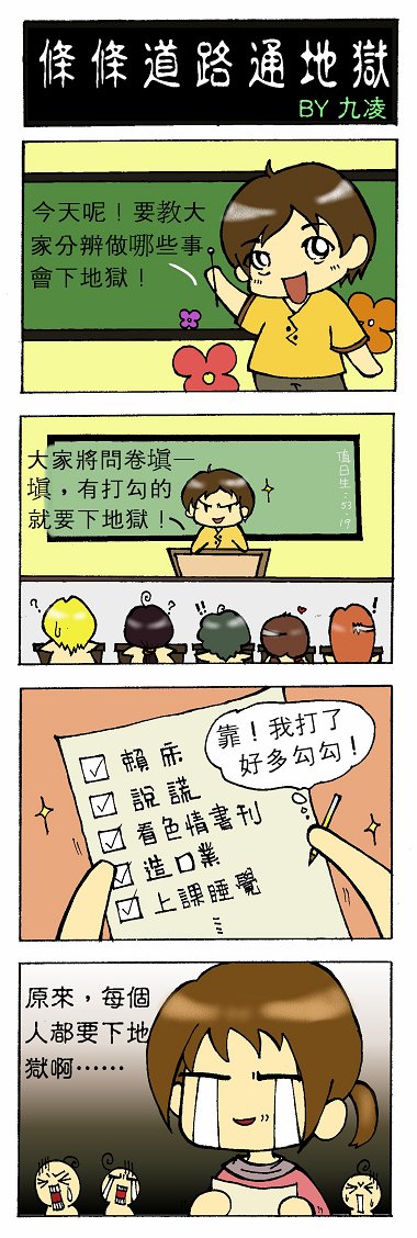 <IMG SRC="http://pic.pimg.tw/ddch13/495647b54759f.jpg"> <IMG SRC="http://pic.pimg.tw/ddch13/495a542ae7b13.jpg"> 這是漫畫課的期末作業...想了很多又重畫很久之後,還是決定要畫蕭大神系列,感謝蕭大神平日的專業與獨特笑話。 結論:要下地獄真的很容易......
